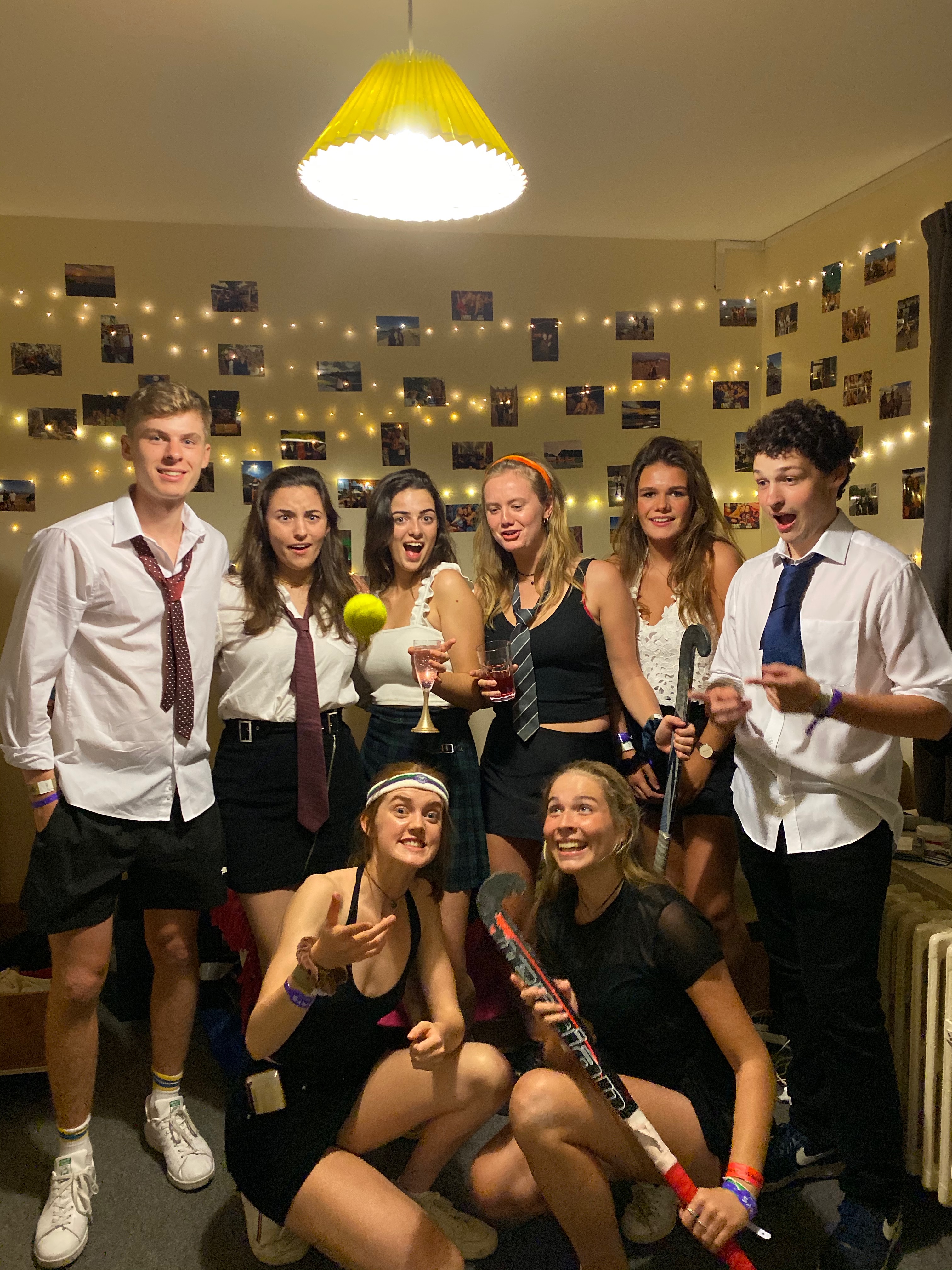 But the crowning jewel of the whole week occurred on the last night with “Glastonmary’s,” a clever play on Glastonbury’s which is a huge music festival held in the southwest of England. It’s the rainy and British version of Coachella. A night to remember, there was glitter, brightly colored outfits, braided hair, and a mechanical surfboard which humiliated many a student who attempted to impress onlookers. It was the perfect way to end the week as my new friends and I took photos in a photo booth and eagerly stood in line for the chocolate fountain, where you could enjoy a variety of ingredients soaked in chocolate flavored goodness.
